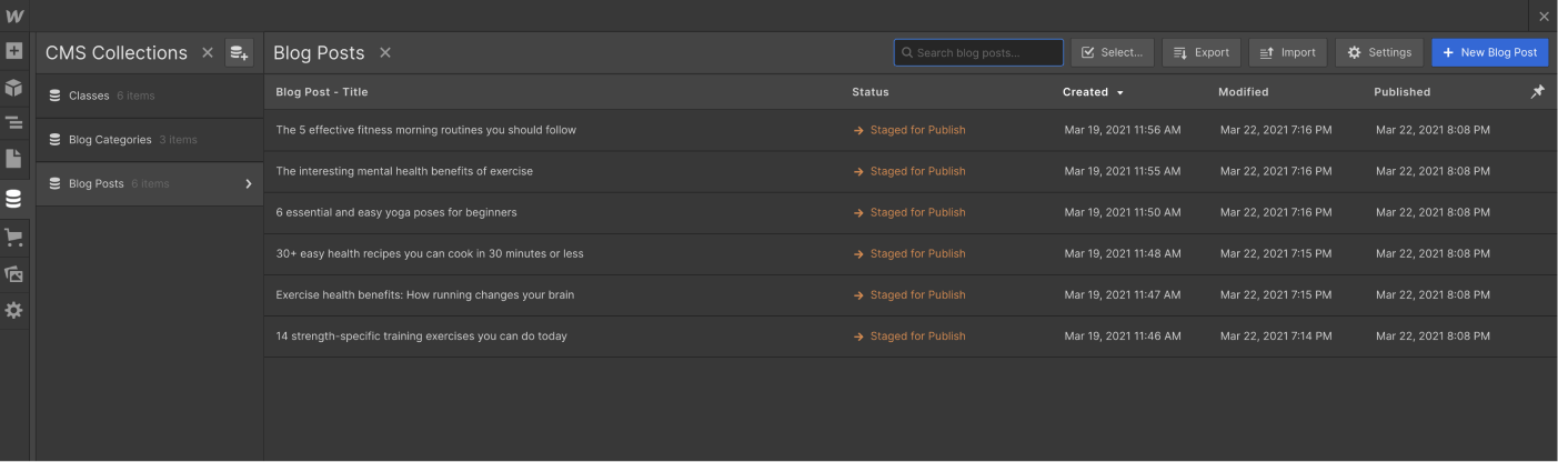 As you could see above, Fitness was built on Webflow using the best practices to make it very easy for you to edit the template and customize it to your needs.